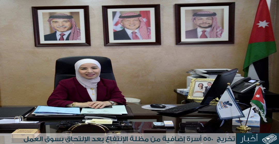 أعلنت مدير عام صندوق المعونة الوطنية، السيدة ختام الشنيكات، تخريج 550 أُسرة إضافية من برامج الإنتفاع بعد التحاق أفرادها بسوق العمل، ليصبح إجمالي الأسر المُخرَّجة منذ انطلاق البرنامج الوطني للتشغيل 1,194