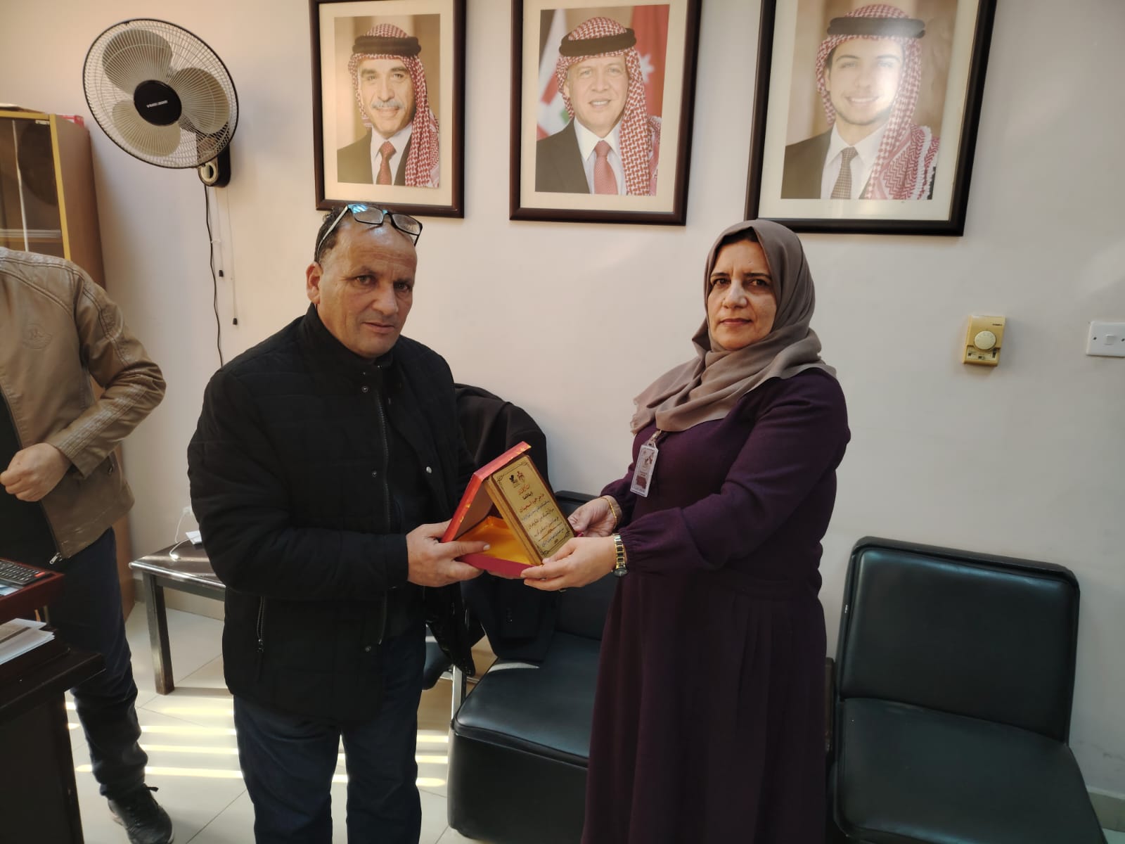 قام مدير مكتب الكرك السيد جاسر الكساسبة بتكريم مندوبة البريد الاردني في المكتب السيدة سخاء الرواشدة وهي أحد الجهات الشريكة والناشطة في تسهيل مهام عمل صندوق المعونة الوطنية.